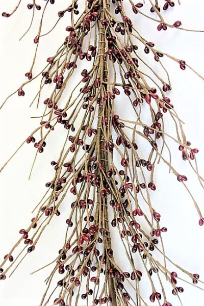 EV-C6 is a five feet long pip berry garland with burgundy berries that can be used for year-round, Fall, Autumn, and Thanksgiving decorating. You can use it to decorate doorways, tables, mantels, staircases, windows, shelves, cabinets, and more.