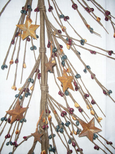 EV-013N - Cream and Burgundy Berry Garland with Rusty Star $15.95EV-011N – Mustard, burgundy, and blue pip berry garland with rusty star