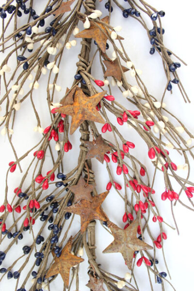 EV-014N – Red, white, and blue pip berry garland with rusty stars