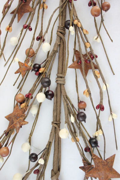 EV-111N - Cream pip berry garland with rusty stars $15.95EV-110N – Burgundy cream and mustard berry garland with rusty stars