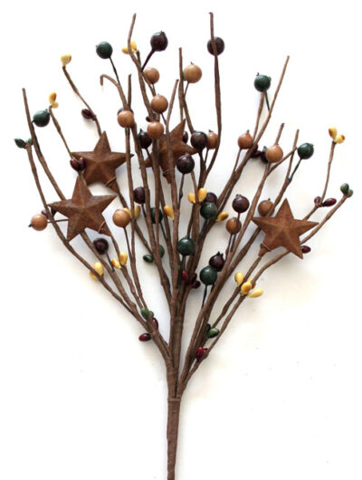 EV-606N 18" Mustard Yellow and Brown Holly Berries Pick with Rusty Stars $4.85EV-607N – 18″ Burgundy, Green, and Mustard Berries Pick with Rusty Stars