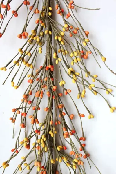 EV-R1009 is a 5-foot-long berry garland with orange and yellow berries that can be used year-round and for fall, autumn, and Thanksgiving decorating. You can use it to decorate doorways, tables, mantels, staircases, windows, shelves, cabinets, and more.